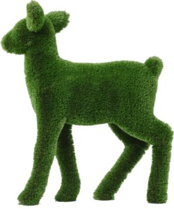 ФИГУРА ИЗ ИСКУССТВЕННОЙ ТРАВЫ - МОЛОДОЙ ОЛЕНЬГабаритные размеры: В 130 см - Ш 50 см - Д 100 см Основа каркаса металл, покрытый прочным полимерным покрытием |