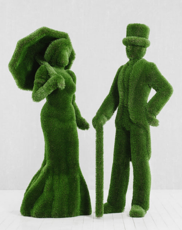 ФИГУРА ИЗ ИСКУССТВЕННОЙ ТРАВЫ - ПАРАРазмеры: Джентльмен: 2,3х0,8х0,85 Стеклопластик, искусственный газон |